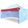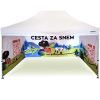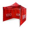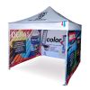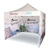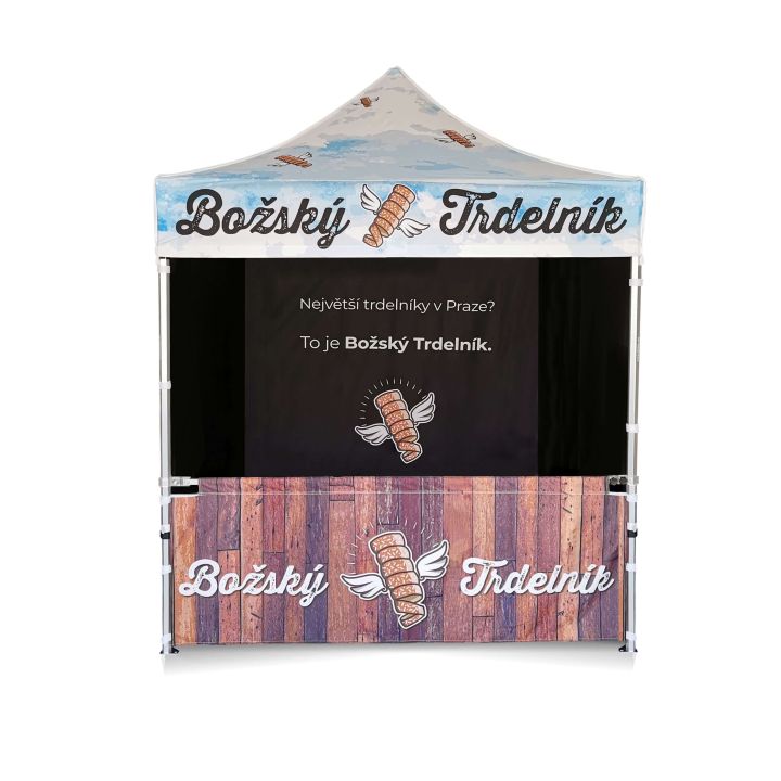 Reklameskure med digital sublimationsprint. Trykket udføres via en kemisk proces, hvor blækket trænger direkte ind i stoffets struktur under høje temperaturer. Logo, tekst eller enhver form for grafik på indersiden eller ydersiden af skuret efter kundens ønske.