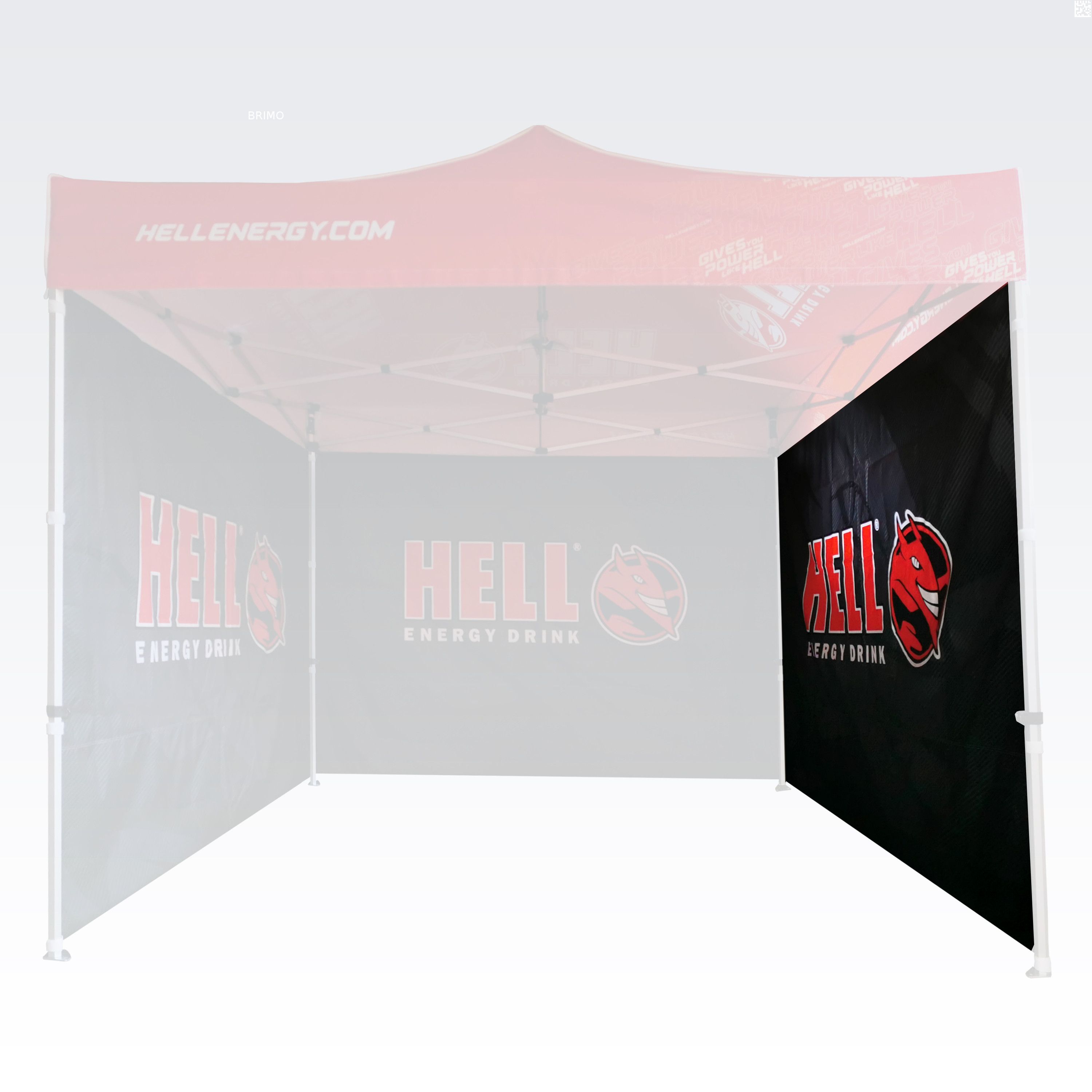 Reklameskure med digital sublimationsprint. Trykket udføres via en kemisk proces, hvor blækket trænger direkte ind i stoffets struktur under høje temperaturer. Logo, tekst eller enhver form for grafik på indersiden eller ydersiden af skuret efter kundens ønske.