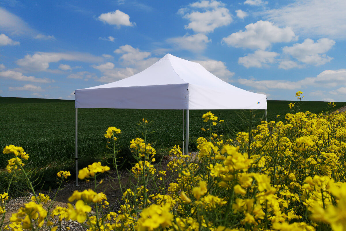 Stoffet er vandtæt, professionelt foldetelt i aluminium kan lukkes med en fjerde væg.