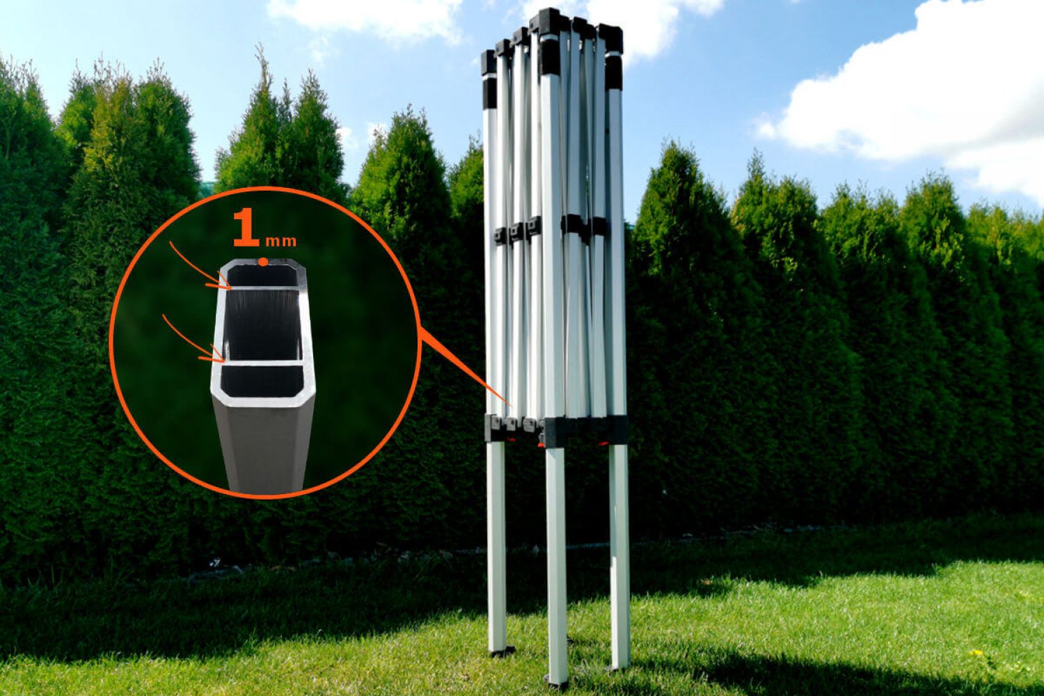 Konstruktionen af professionelt foldetelt i aluminium er lavet af holdbart aluminium, hvilket garanterer lang levetid selv ved hyppig brug.