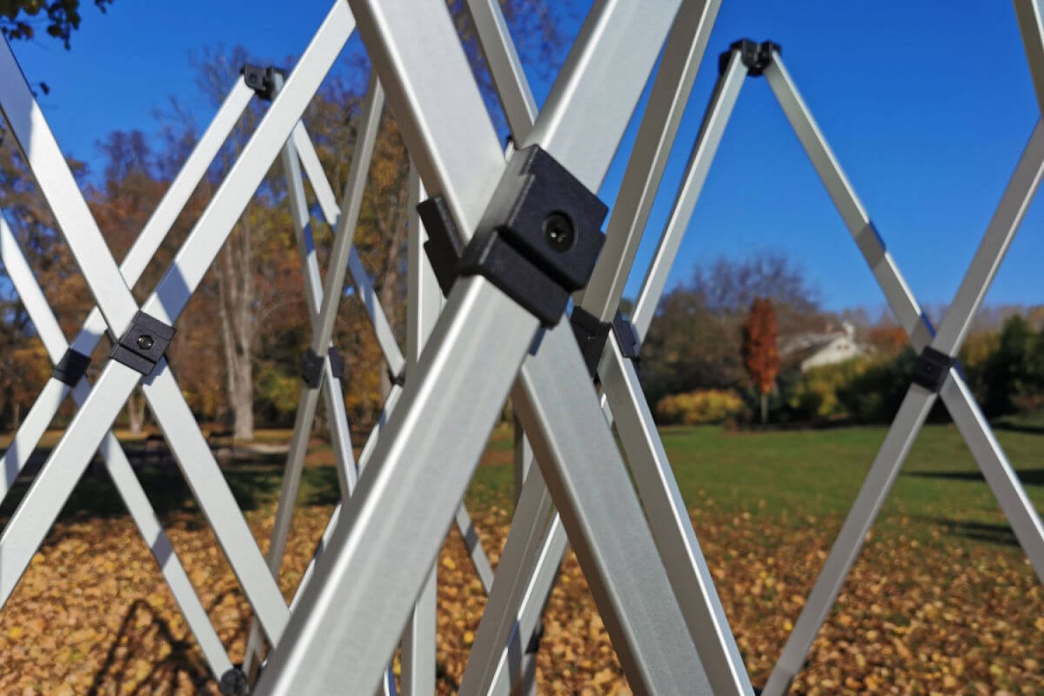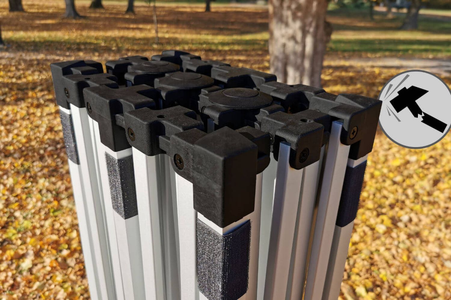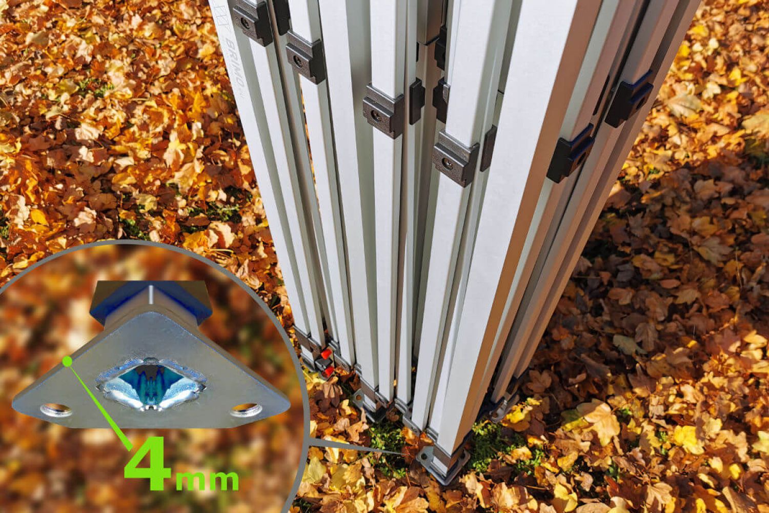 I prisen på teltet (afhængig af modellen) får du altid tre separate vægge. Du kan meget elegant fastgøre disse vægge til teltets tag og ben. Montering er hurtig og bekvem. Lige så nemt er det at fastgøre taget til den aluminiums konstruktion, og der er ingen risiko for, at det går i stykker, selv ved kraftig vind.