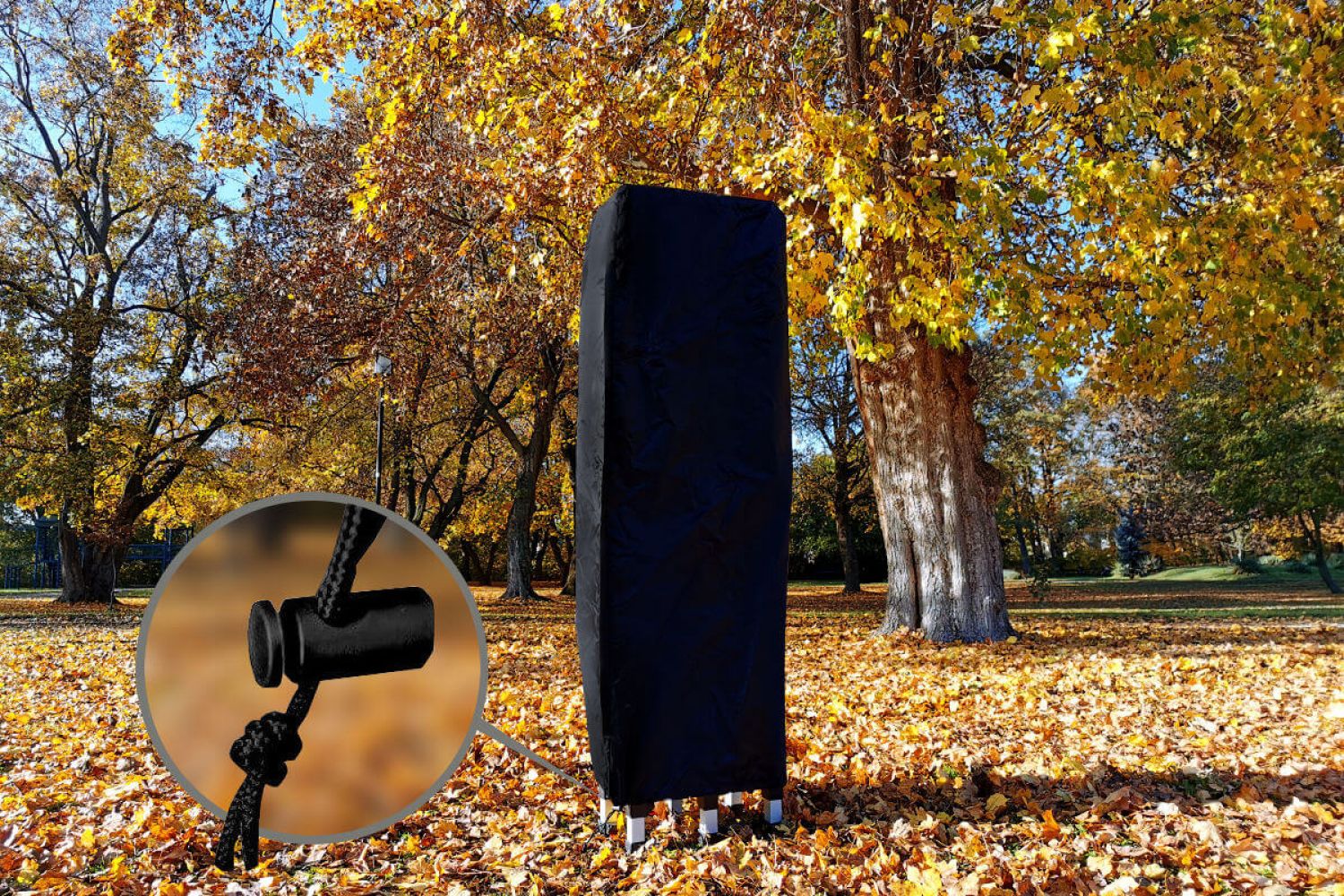 I køligere perioder kan det vandtætte partytelt lukkes med en fjerde væg (under tilbehør med døre og vindue med rullegardin og tæt lukning af teltet). Den lukkede plads kan opvarmes med en gasvarmer, men vær sikker på, at der er tilstrækkelig ilt i teltet, da gasvarmere bruger ilt.
