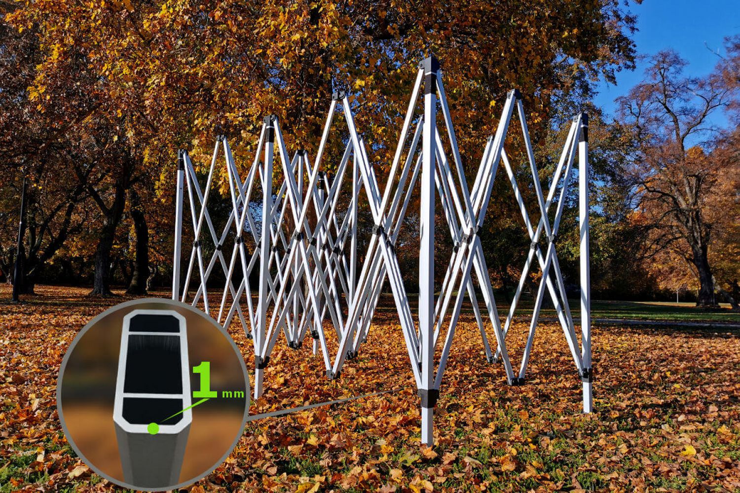 - Exclusive model i aluminium, der bruges ved vind op til 60 km/t. Ben med huller til forankring i jorden med pløkker - gratis!