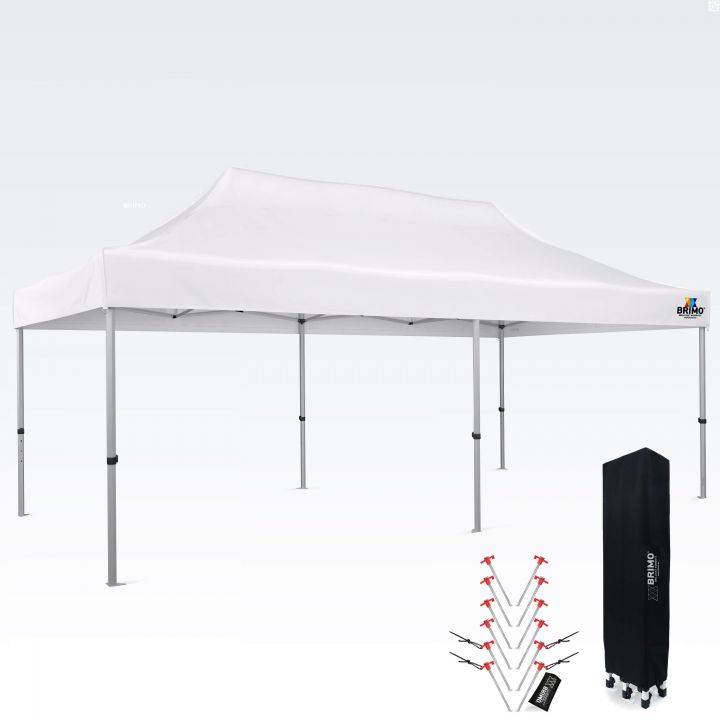 Taget og væggene er vandtætte med dobbelt beskyttelse mod lækage. Ved stærk sol vil de skabe perfekt skygge, og hvis du ikke lukker teltet fra alle sider, vil brisen forfriske dig bedre end en kold øl. For at sikre de vandtætte partytelt på hårde overflader anbefales det at købe sandposer med opsætning på få sekunder. Du kan finde dem under tilbehør.